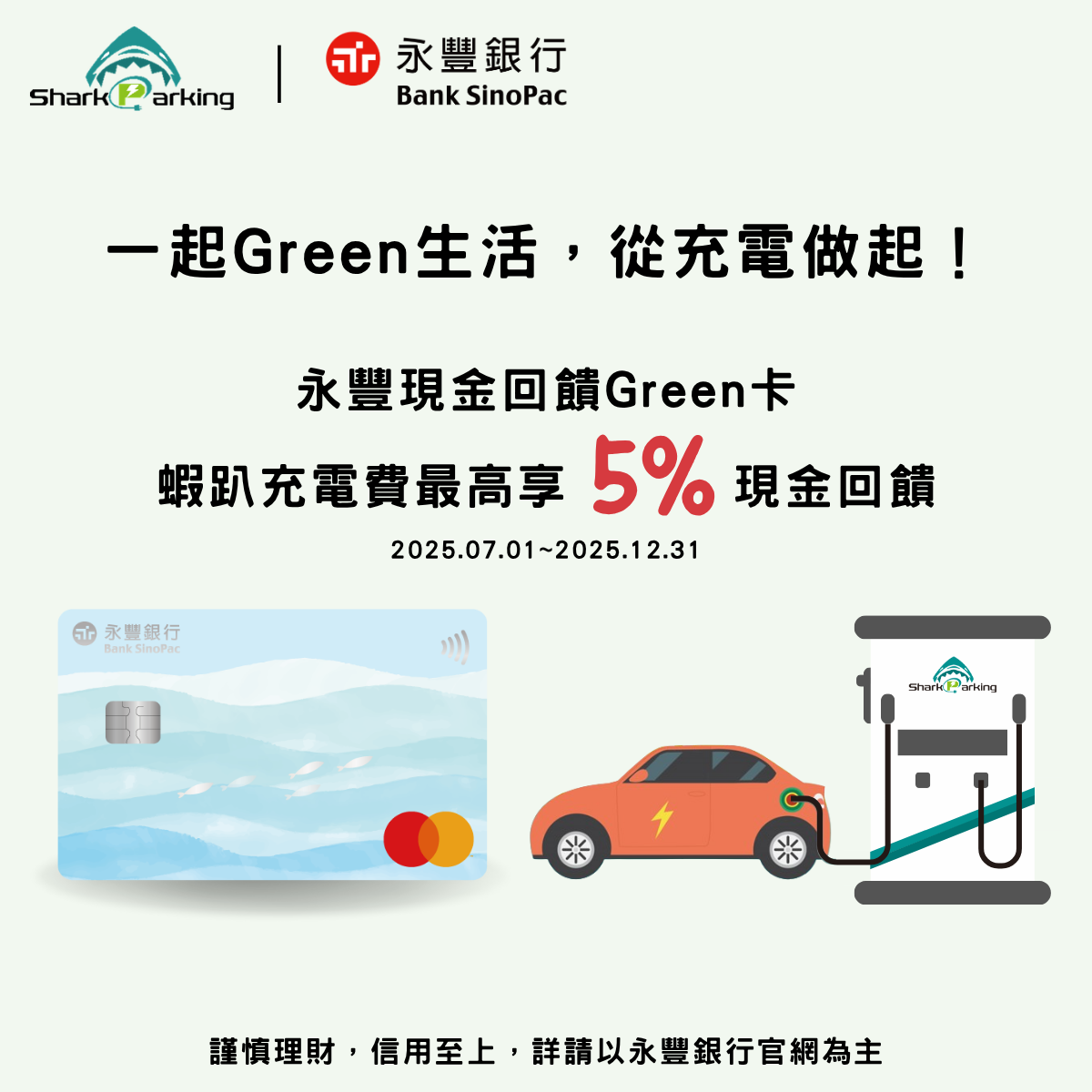 於 SharkParking蝦趴 使用 #永豐現金回饋Green卡 付款