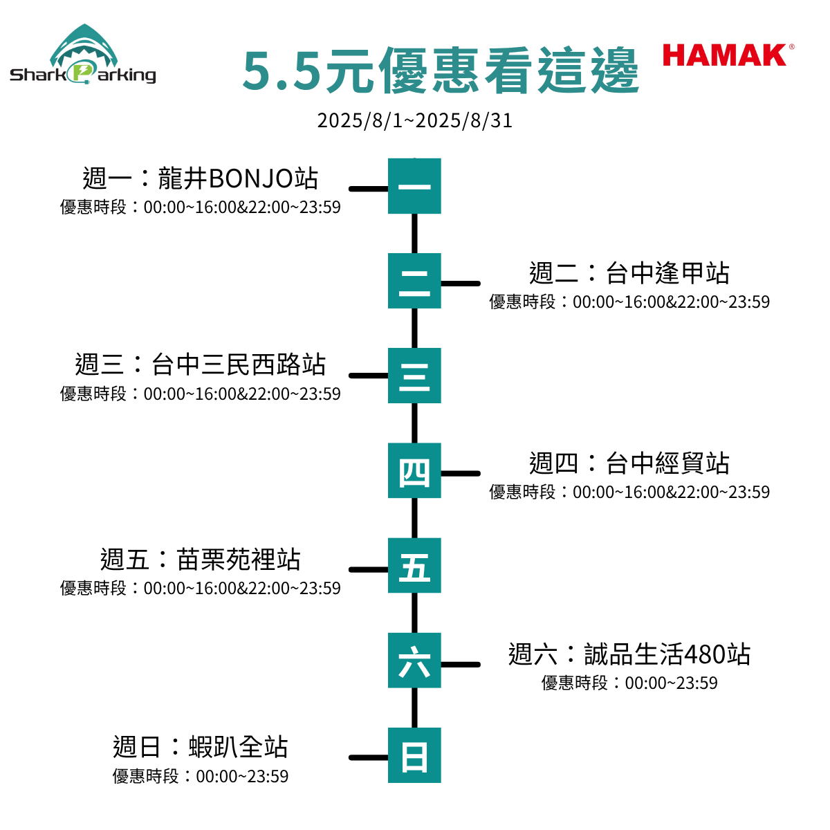 週日更爽,所有站點全天都是5.5元!